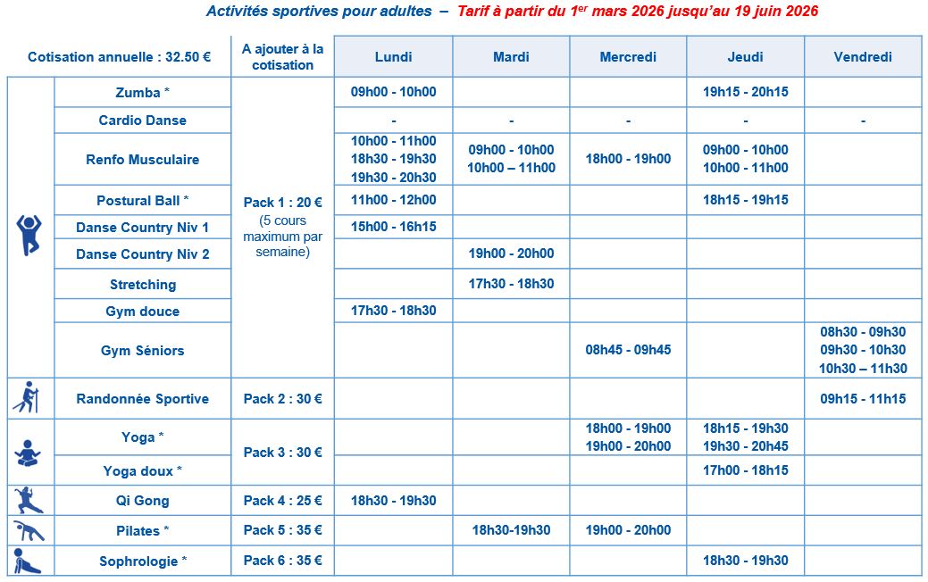 Les cours sont dispensés tout au long de l'année à l'exception des vacances scolaires et des jours fériés. Ils sont encadrés par des animatrices et animateurs diplômés, attentifs aux besoins et capacités des participants.